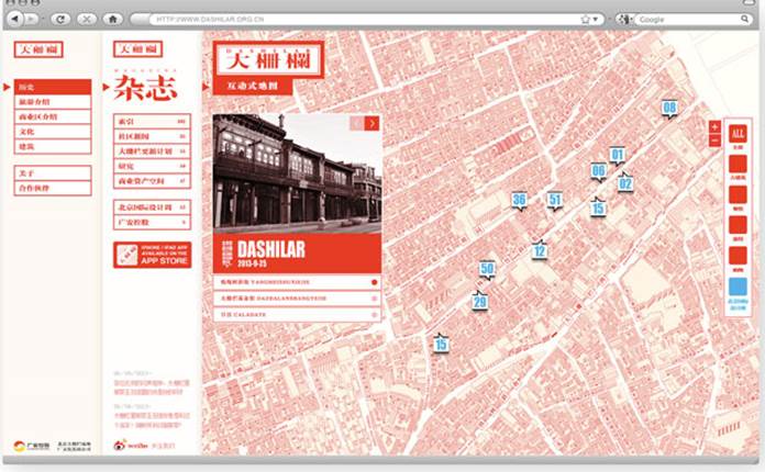 大柵欄官方網(wǎng)站于2014年6月正式對外運營,網(wǎng)站單日訪問量最高為9000次,設(shè)計周期間總訪問量高達(dá)33.8萬次,大柵欄網(wǎng)站憑借其獨特精美的設(shè)計榮獲2014紅點獎傳播設(shè)計獎。
