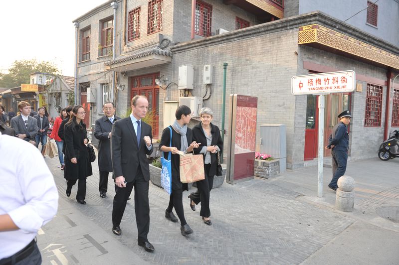 2013年10月21日下午,聯(lián)合國教科文組織總干事伊琳娜·博科娃女士參觀了楊梅竹斜街和大柵欄商業(yè)街,隨行人員包括聯(lián)合國教科文組織北京代表處主任辛格先生,北京市科委主任閆傲霜及北京市科委北京工業(yè)設(shè)計促進中心主任陳冬亮。西城區(qū)副區(qū)長陳寧、大柵欄琉璃廠建設(shè)指揮部常務(wù)副書記王志忠隨行陪同,北京大柵欄琉璃廠文化發(fā)展有限公司副總經(jīng)理賈蓉隨行講解。