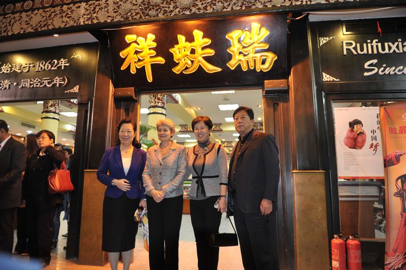 伊琳娜·博科娃參觀了楊梅竹斜街,對大柵欄更新計劃這一模式給予了充分肯定。隨后,伊琳娜·博科娃游覽了大柵欄商業(yè)街,她高度評價了古老而繁華的街區(qū)、老字號的精良工藝,并進入內(nèi)聯(lián)升和瑞蚨祥參觀。