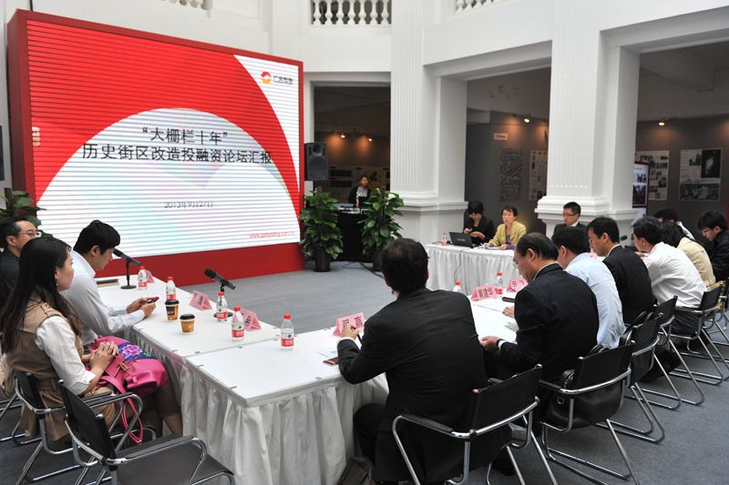 2013年9月27日上午,大柵欄十年保護與發(fā)展論壇之“歷史文化街區(qū)投融資論壇”在勸業(yè)場舉行。來自國開行、中行、農(nóng)商行、新華信托、中金投資、IDG等銀行、其他金融機構(gòu)及投行的代表共計19位嘉賓參會,會議由控股公司資金財務中心鄧清秀主任主持。