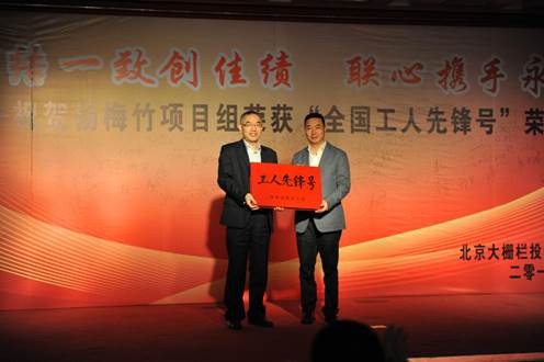 2016年10月20日,北京大柵欄投資有限責任公司楊梅竹項目組榮獲中華全國總工會頒發(fā)的“全國工人先鋒號”榮譽稱號的全員會議成功舉行。北京廣安控股有限公司領導班子以及北京大柵欄投資有限責任公司及下屬子公司全體員工參加了會議。