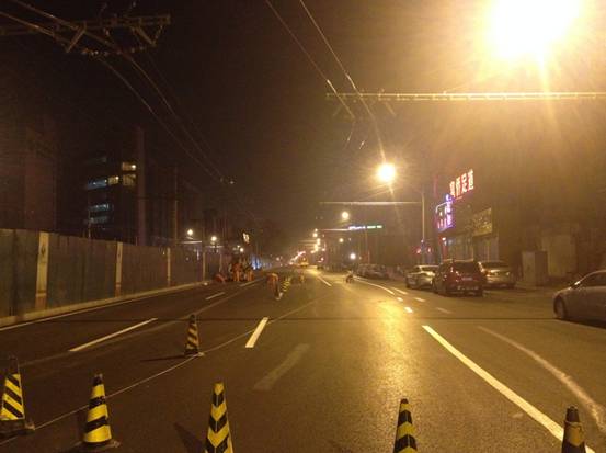 2014年1月15日凌晨兩點(diǎn),隨著市電車公司四輛工程車升降臺(tái)緩緩落下,太平街二期市政道路改擴(kuò)建工程電車線路勝利合龍,同時(shí),新的交通標(biāo)線也施劃完畢。三點(diǎn),現(xiàn)場(chǎng)清理完成,新建道路全面放行。繼2013年12月18日道路工程全部完工,道路全線通車這一節(jié)點(diǎn)目標(biāo)于本日順利實(shí)現(xiàn)。下一步,廣安基礎(chǔ)公司會(huì)同陶然亭、天橋辦事處及相關(guān)部門將對(duì)道路兩側(cè)環(huán)境進(jìn)行整治,繼續(xù)推進(jìn)中芭以北居民拆遷、騰退工作,加強(qiáng)對(duì)中芭段這一擁堵節(jié)點(diǎn)的交通疏導(dǎo)。