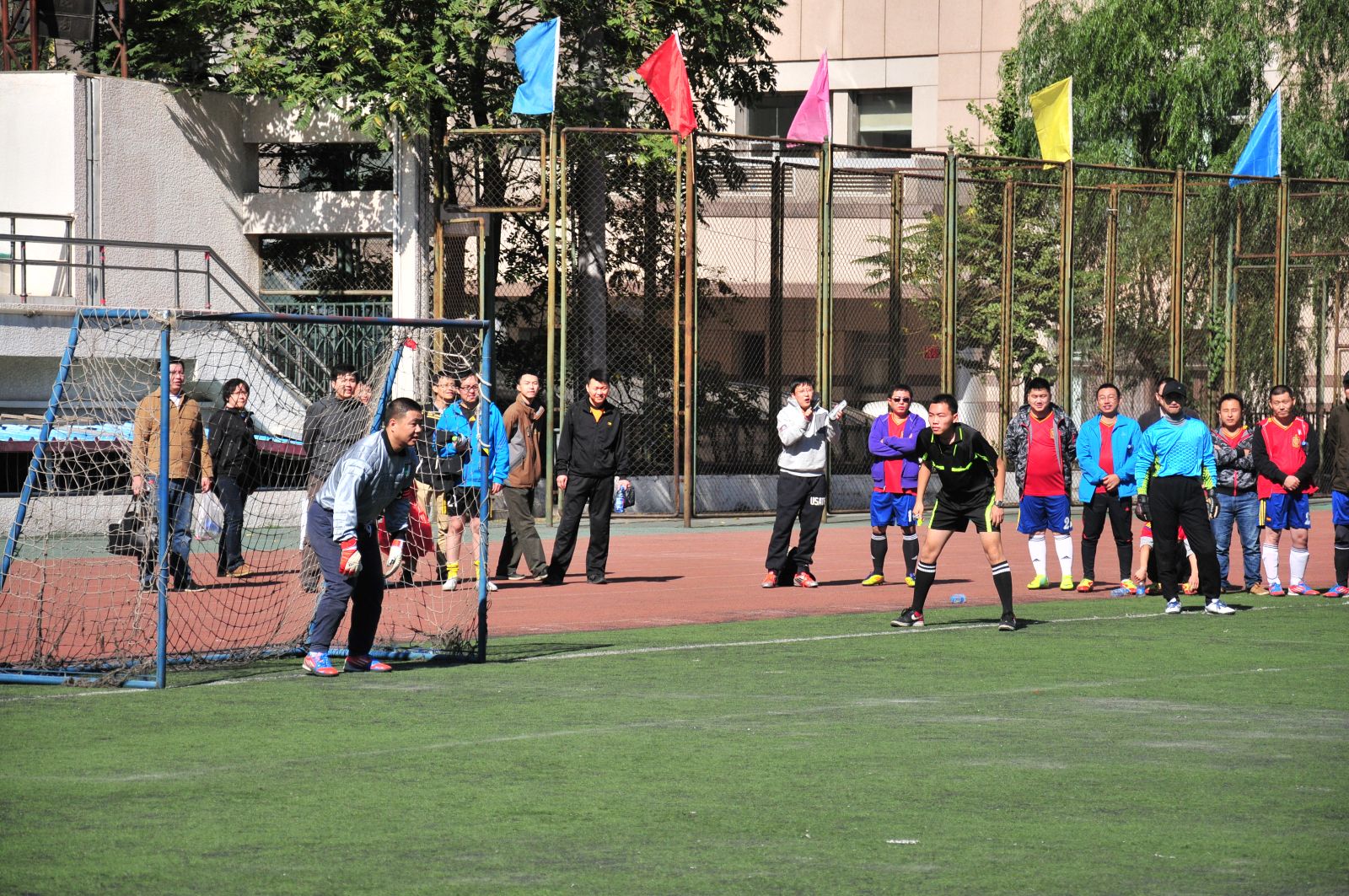 2013年10月15日月壇體育場(chǎng),隨著裁判員的一聲哨響,廣安控股足球隊(duì)又一次踏上賽場(chǎng)。此次是參加由西城區(qū)總工會(huì)舉辦的全區(qū)第一屆職工運(yùn)動(dòng)會(huì)足球比賽,共32支參賽隊(duì)伍,本輪比賽對(duì)陣金融街集團(tuán)隊(duì)。開賽伊始,雙方隊(duì)員迅速進(jìn)入狀態(tài),在攻守轉(zhuǎn)換中比賽以1:1平進(jìn)入點(diǎn)球大戰(zhàn)階段。第一輪點(diǎn)球由中場(chǎng)隊(duì)員趙偉率先破門,隨后對(duì)方回敬一球,第二輪由前鋒隊(duì)員王勇再下一球,此時(shí)壓力又一次交給對(duì)方射手,我方守門員張育沉著冷靜將皮球擋在門外,比分最終鎖定3:2,廣安控股隊(duì)力克金融街集團(tuán)隊(duì),挺進(jìn)16強(qiáng)。通過這次比賽,又一次鍛煉了隊(duì)伍,全隊(duì)再接再厲繼續(xù)為廣安控股增光添彩。