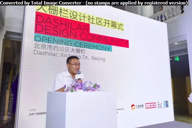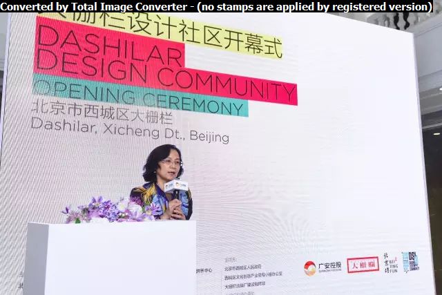 一年一度的國際設(shè)計(jì)周作為北京最具影響力的大型文化活動之一,今年再一次選擇與大柵欄更新計(jì)劃合作,作為設(shè)計(jì)周主辦方代表,北京歌華文化發(fā)展集團(tuán)副總經(jīng)理、設(shè)計(jì)周組委會辦公室副主任陳工女士表達(dá)了對大柵欄設(shè)計(jì)社區(qū)過去幾年工作的肯定以及對今年活動的期望與祝愿。