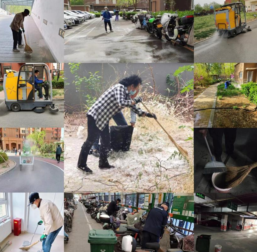 天寶物業(yè)各項(xiàng)目濕化清掃楊柳飛絮